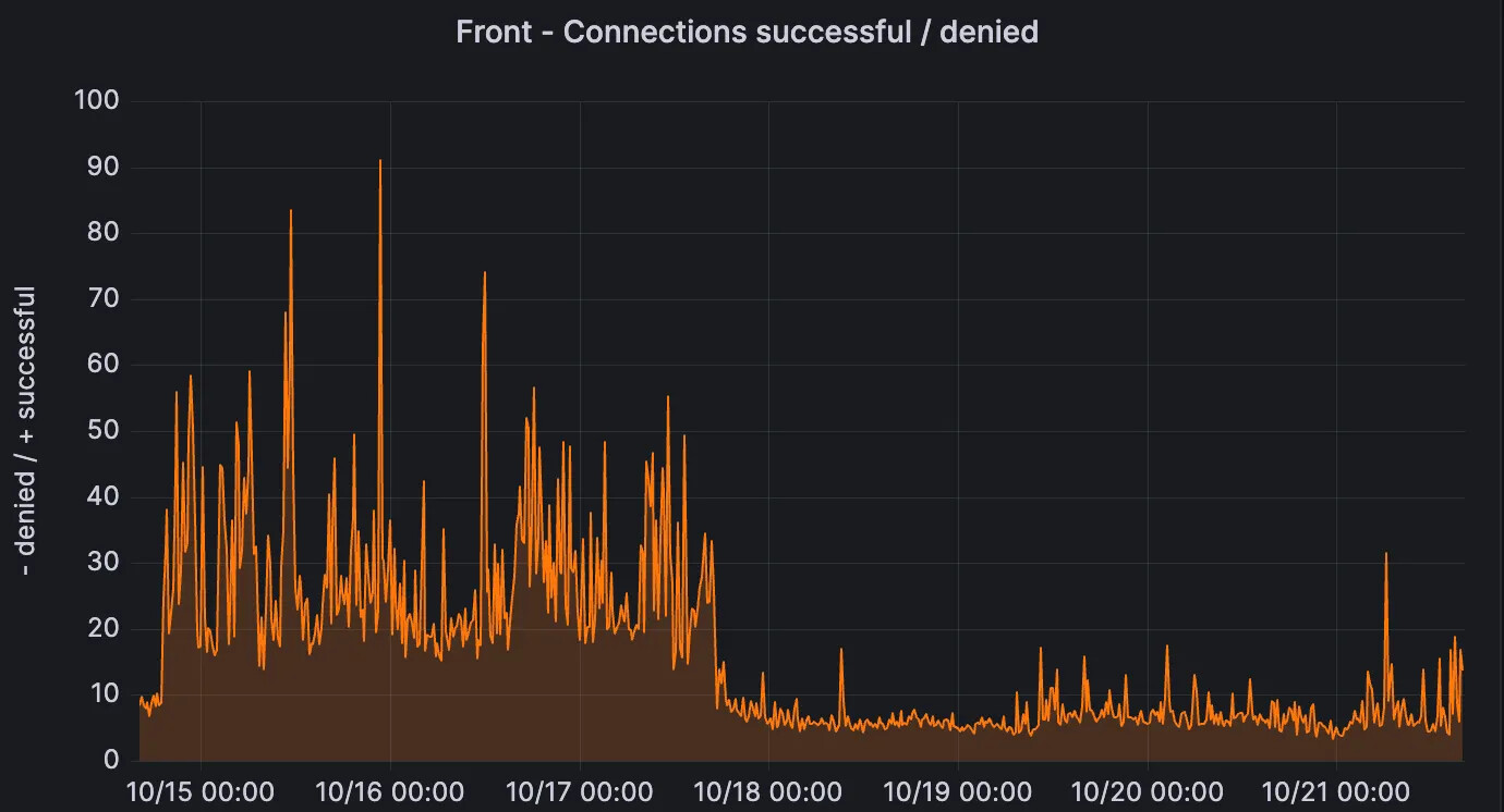 However, it was still noticed that there were a lot of connection attempts on the server side of any proxy, many more than before. Additionally, the number of timeouts increased drastically, which would result in lost orders if not dealt with.
