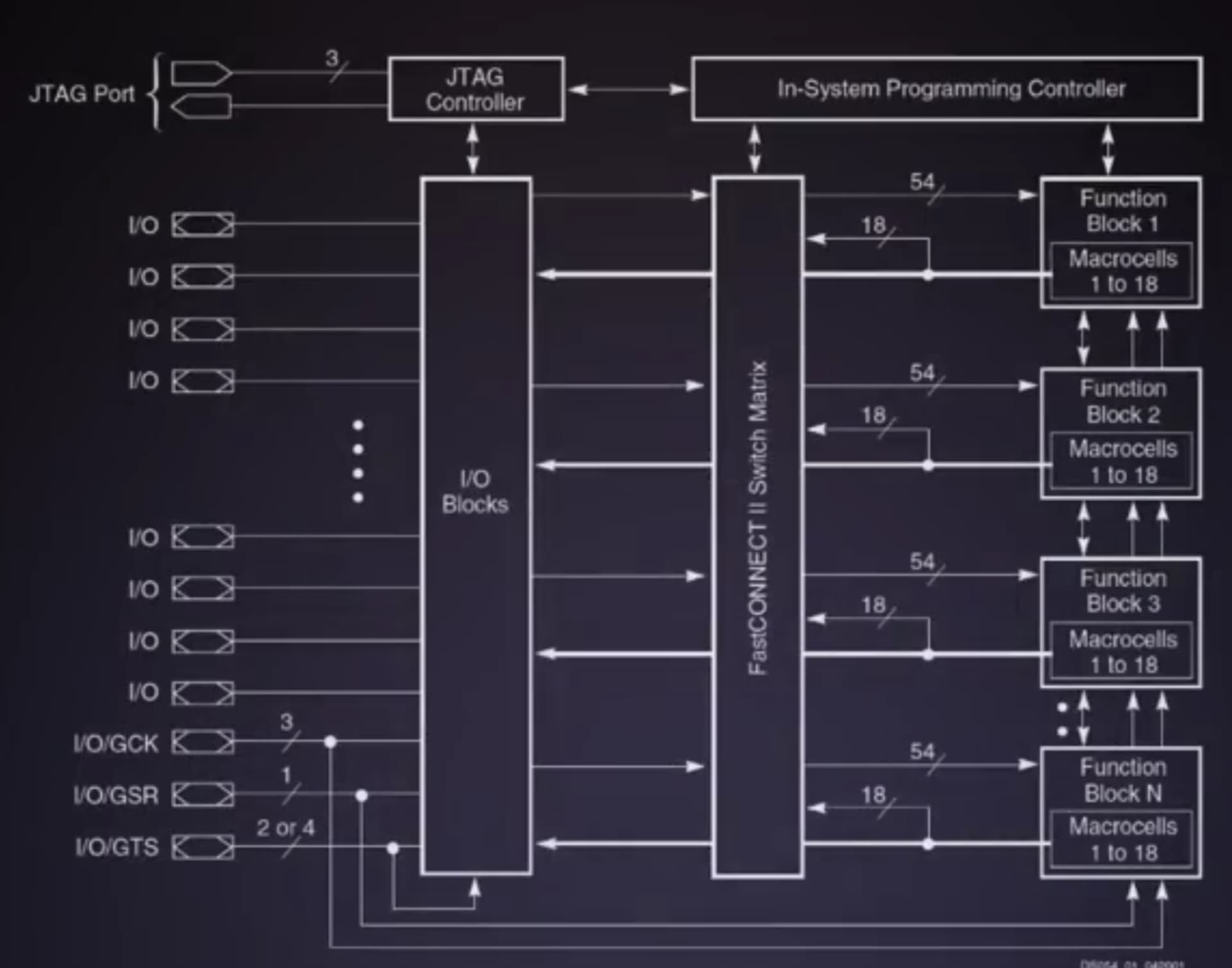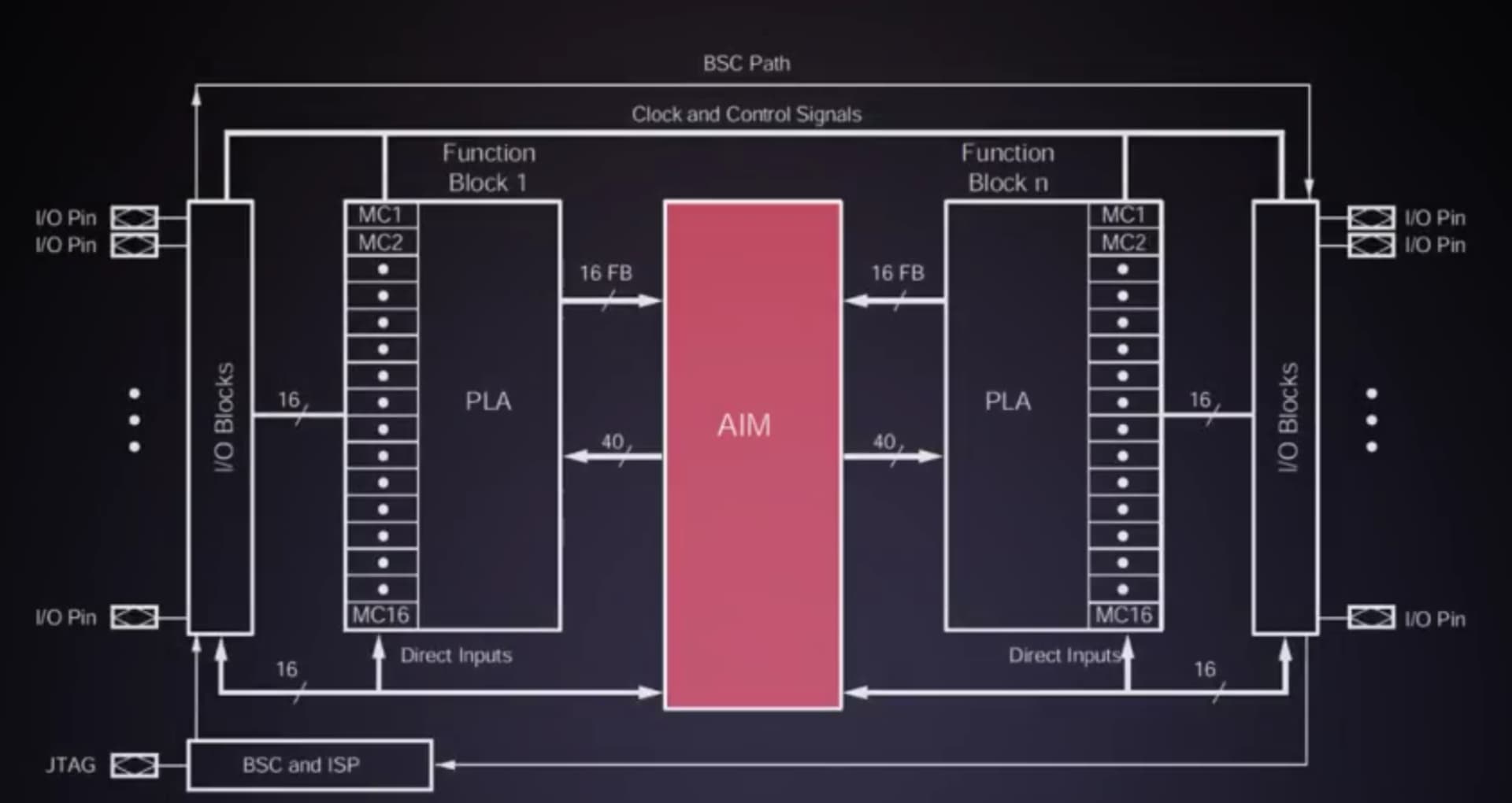 Complex Programmable Logic Device (CPLDs), multiple PALs in the same package with registered outputs and an interconnecting programmable fabric.