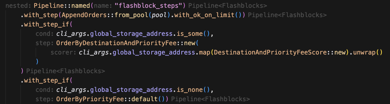 score()function ofOrderByDestinationAndPriorityFeeis implemented in the following way:- Notice the output being a tuple, with the destination being the first value of this tuple. As explained in the code comment, this means transactions going to the global storage address are always prioritized, followed by priority fee.