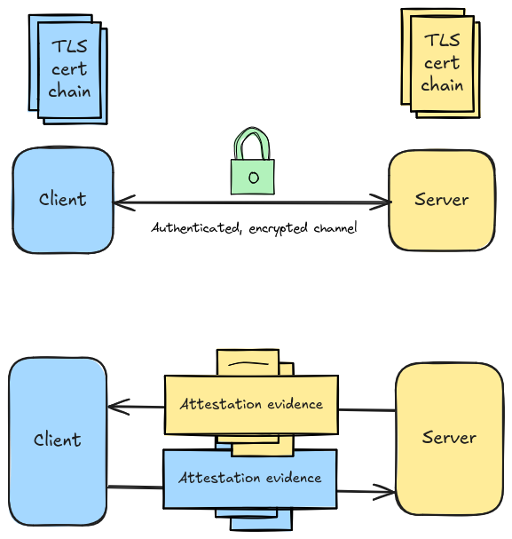 Since TLS is the standard protocol for secure internet communication, combining TLS with remote attestation seems like an obvious choice. But they can be combined in many different ways with different tradeoffs.