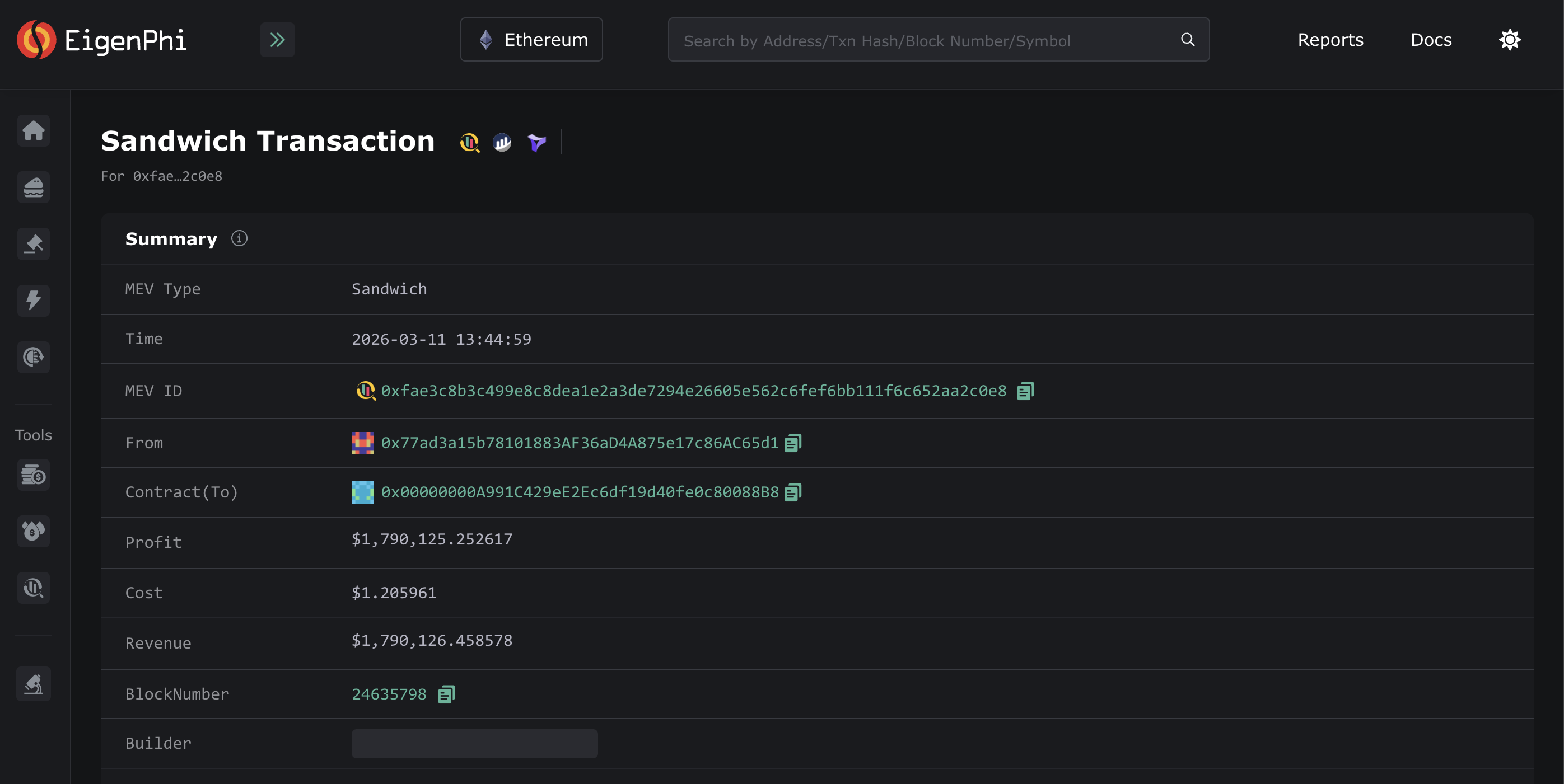 Sandwich 0xfae3 - Displayed Profit of $1.79 million