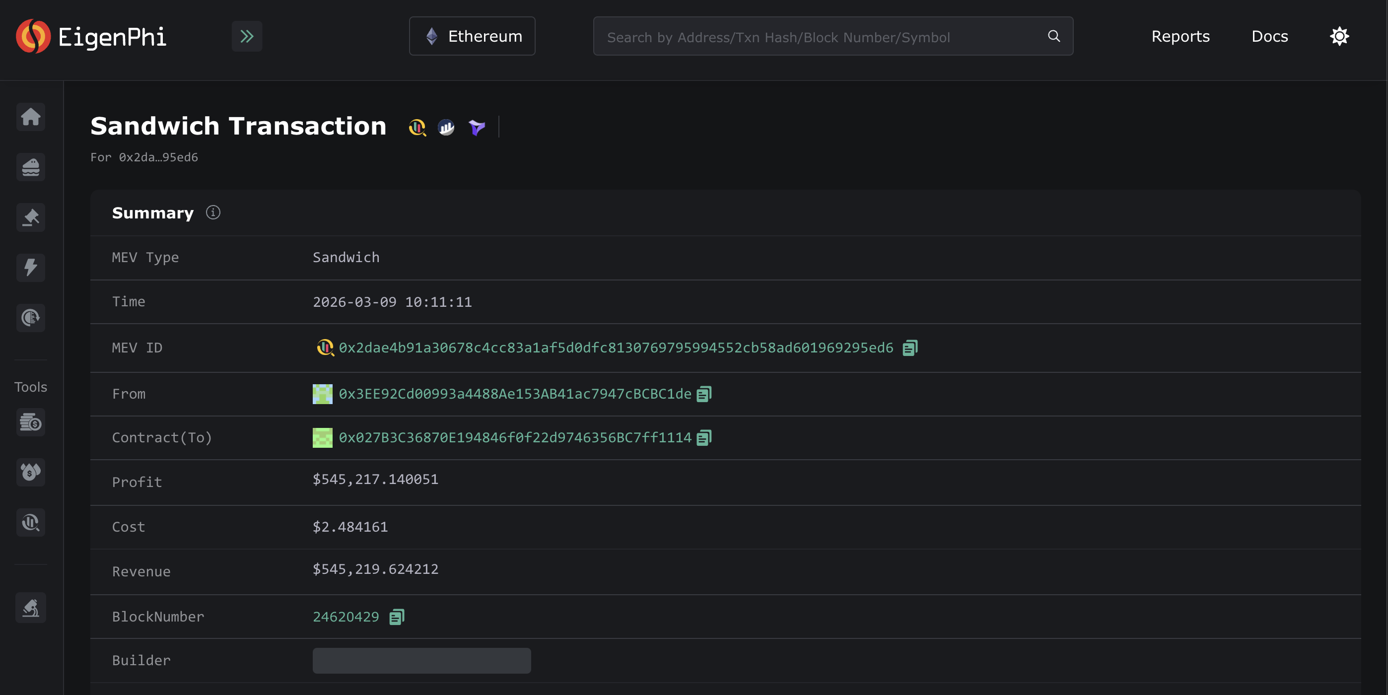 Sandwich 0x2dae - Displayed Profit: $545 thousand