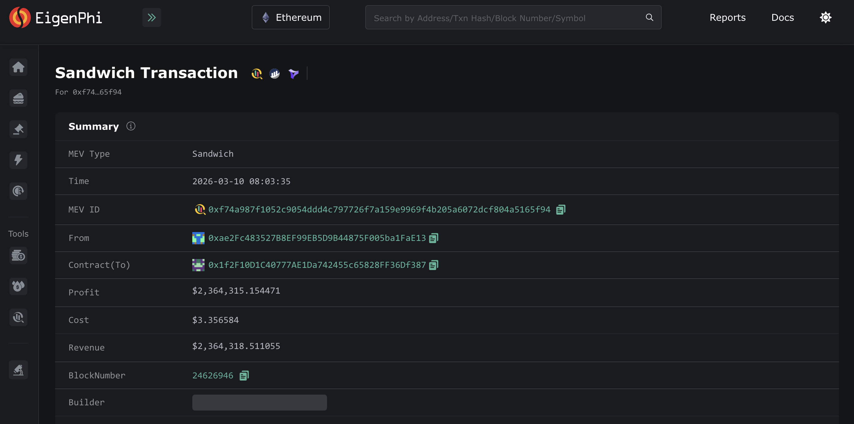 Sandwich 0xf74a - Displayed Profit of $2.36 million